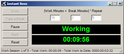 Instant Boss will time your work/break cycles, reminding you when to work and when to take a break.